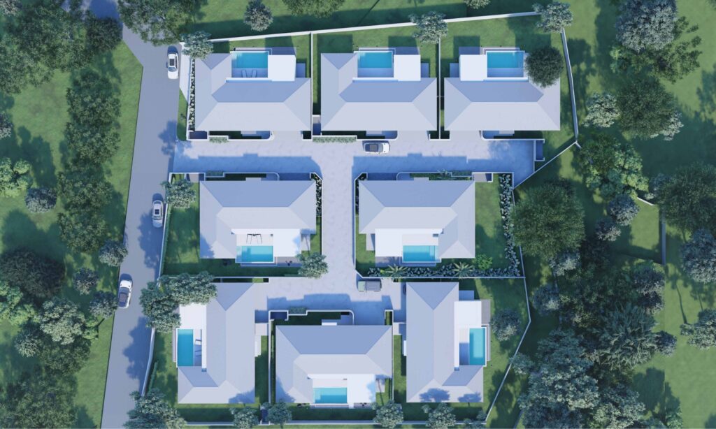 Land plots range from 450 to 640 sqm, ensuring “Natural Privacy” and space for mature tropical landscaping. Ranging from the 452 sqm of Villa 11 to the expansive 636 sqm of Villa 15, these elevated hillside plots are positioned to capture panoramic mountain views and cool breezes.