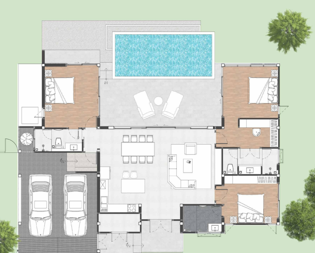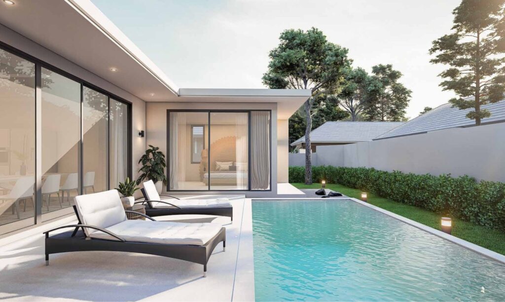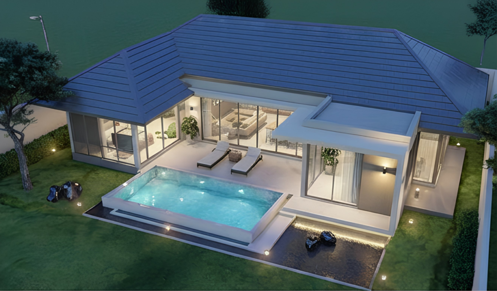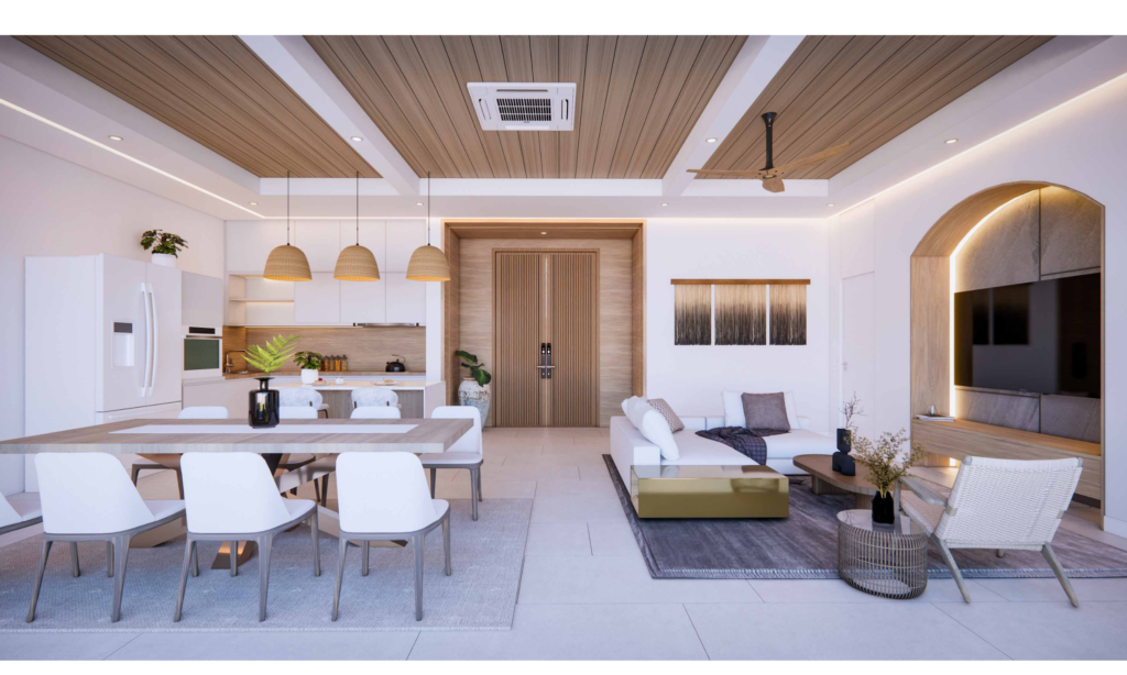 Spanning approximately 210–220 sqm, each villa features high ceilings and a spacious open-plan design. The layout prioritizes comfort with 3 ensuite bedrooms, including a 26 sqm master retreat. Floor-to-ceiling aluminum-framed glass doors seamlessly merge indoor luxury with the natural surroundings.